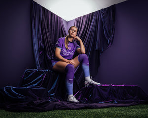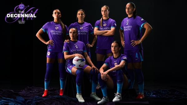 The Decennial Kit presented by Orlando Health, celebrating 10 incredible years! Inspired by our 2016 jersey, it features Orlando’s signature purple, Eola Blue sleeves, and an iridescent crest—a tribute to our 2024 NWSL Shield and Championship wins.